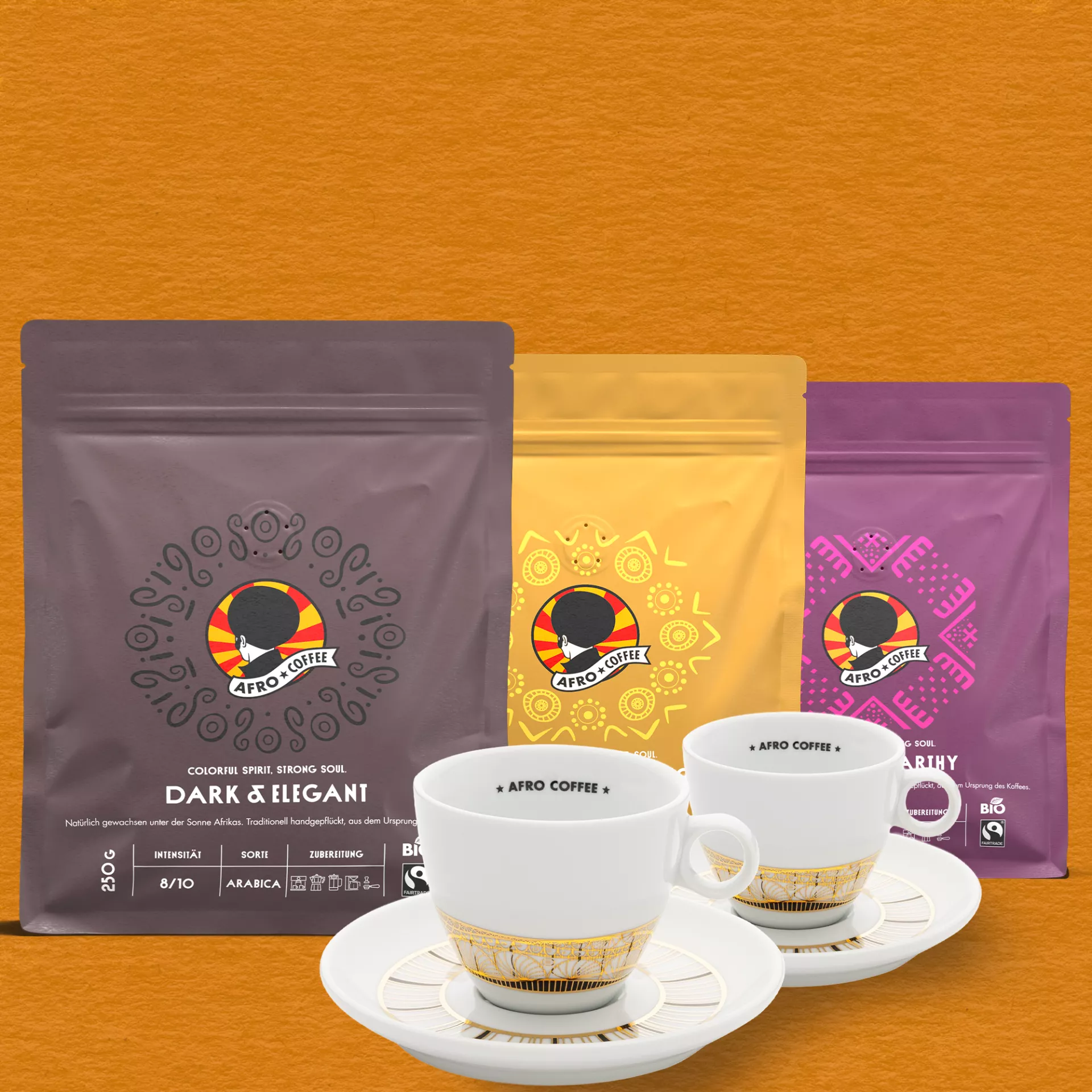 Explore our range of ground coffees – carefully selected, freshly milled, and ready for your preferred brewing method. Whether pour-over, French press, or drip machine: Afro Coffee delivers rich aroma and bold character. Sourced from organic farming and certified Fairtrade, our ground coffee is crafted for conscious enjoyment.
